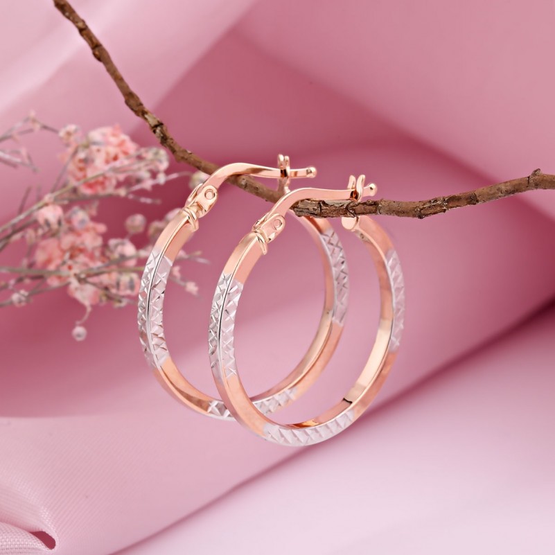 Русское золото 585 пробы Золотые серьги конго 24 мм биколор. Элегантные серьги-кольца, известные как креолы, из красного золота 585 пробы с акцентами из белого золота подчеркнут ваши женственность и грацию.
