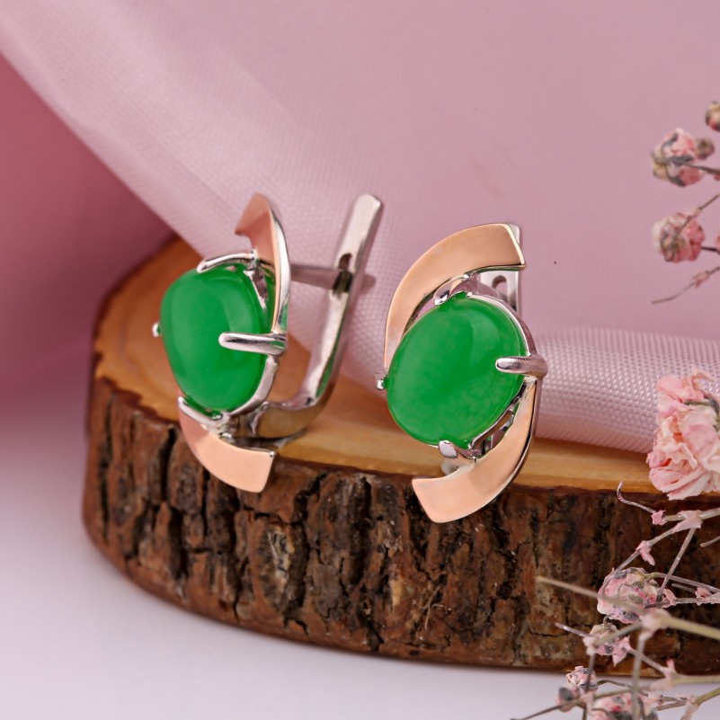 Вставки: 2 жадеит овал 10.0 х 8.0 мм