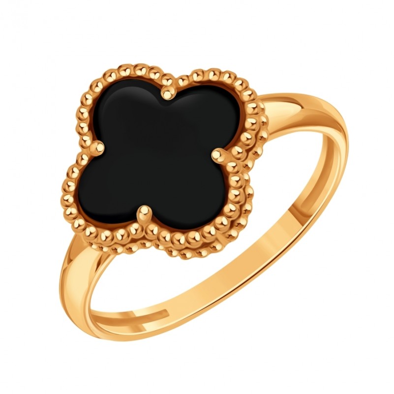 Кольцо из красного золота 585 Оникс. Золотое кольцо из русского красного золота 585 пробы со вставкой очаровательного чёрного оникса. Обаятельное и нежное кольцо из красного золота 585 пробы подчеркнёт женственность, изящество и хороший вкус. Очаровательный подарок для любимого человека!
