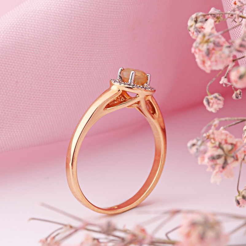 SOKOLOV Русское золото 585 Кольцо с бриллиантами Опал. Кольцо из русского красного золота 585º с акцентами из белого золота, превосходно подчёркивающего сияние и неповторимую красоту бриллиантов и искристость опала. Изящное золотое кольцо с бриллиантами для красивых женских пальчиков! Безусловно, каждая женщина мечтает о таком незабываемом и запоминающимся подарке, как золотое кольцо с бриллиантом.