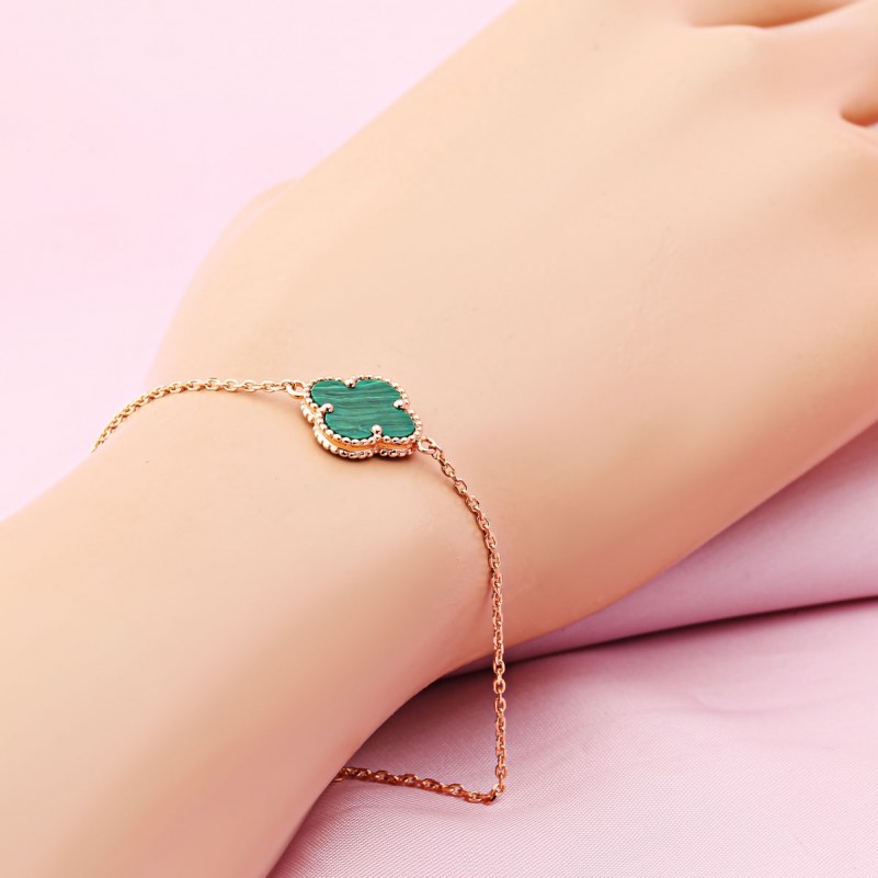Золотой браслет Красное золото 585 пробы Малахит ?10 мм. Нежный и романтичный браслет из красного золота 585 пробы с очаровательным малахитом. Прекрасный подарок для любимой, который подчеркнёт её женственность и красоту, а также неизменность Ваших чувств! Цепь - якорное плетение.