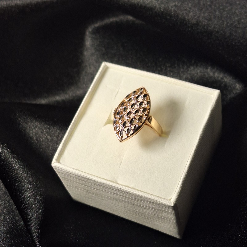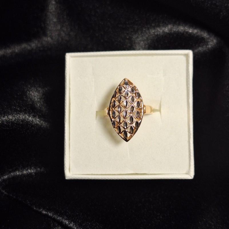 Кольцо из русского золота 585. Золотое кольцо из русского красного золота 585 пробы с акцентами из белого золота c алмазной огранкой. Обаятельное и нежное кольцо из красного золота 585 пробы подчеркнёт женственность, изящество и хороший вкус. Очаровательный подарок для любимого человека!