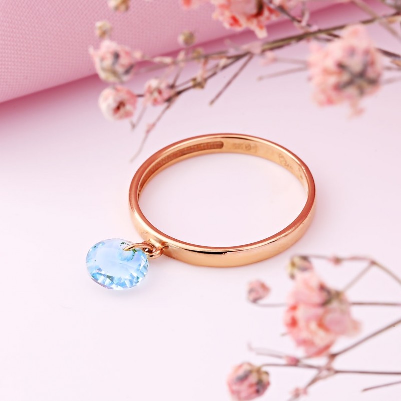 Изящное кольцо из красного золота 585 пробы со вставкой очаровательного топаза скай блю. Такое украшение, словно создано дарить своей обладательнице изысканность, великолепие и лучезарное настроение каждый день! Изделие из топаза подчёркивает нежность, очарование и естественность красоты владельца! Это прекрасный подарок для любимого человека.