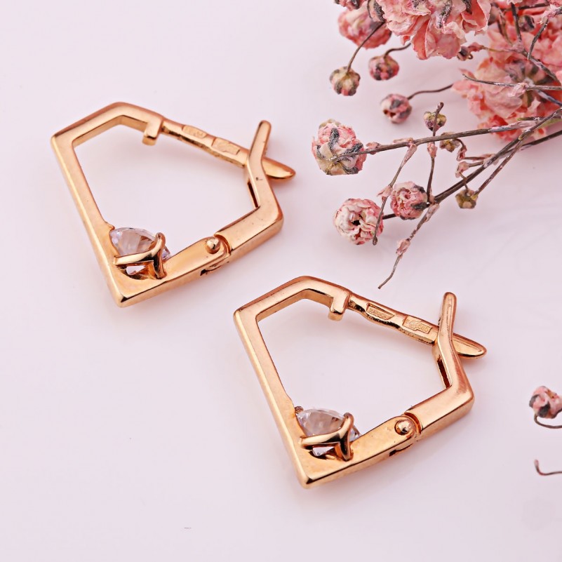 Стильные серьги из красного золота 585 пробы со вставками очаровательного куб. циркония. Идеальное завершение имиджа женщины, которая любит менять образы - это cерьги из красного золота 585 пробы. Такое изделие, выразительное и изысканное, подходит женщинам любого возраста, которые ценят интересный дизайн и безупречность камней.