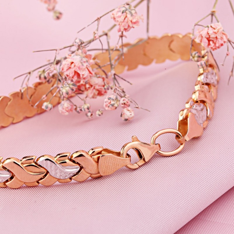 Ценность именно красного золота заключается в его прочности, устойчивости к нагрузкам и долговечности. Эти достоинства позволяют создавать легкие ажурные украшения без опаски, что материал быстро потеряет форму или сотрется. Украшения из красного материала выглядят изумительно, даже если они не инструктированы драгоценными камни. Такие изделия подходят к любому типу кожу, украсят женщину любого возраста и придадут облику изысканность и элегантность. Золотые украшения считаются самыми безопасными, так как очень редко становятся причиной возникновения аллергии.