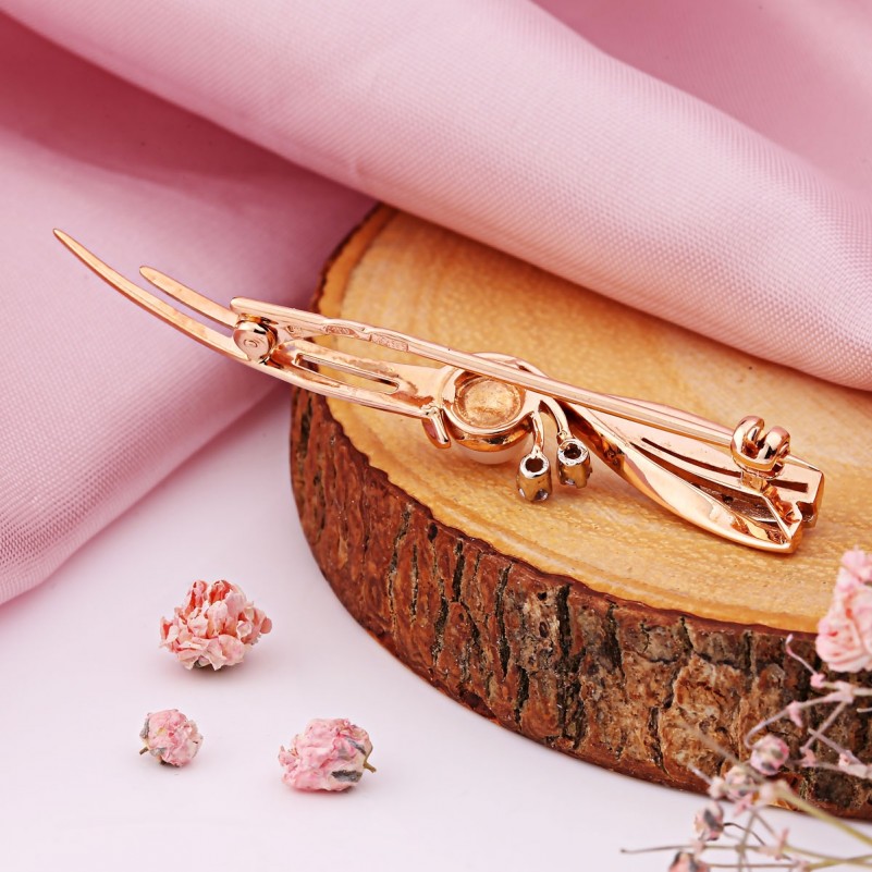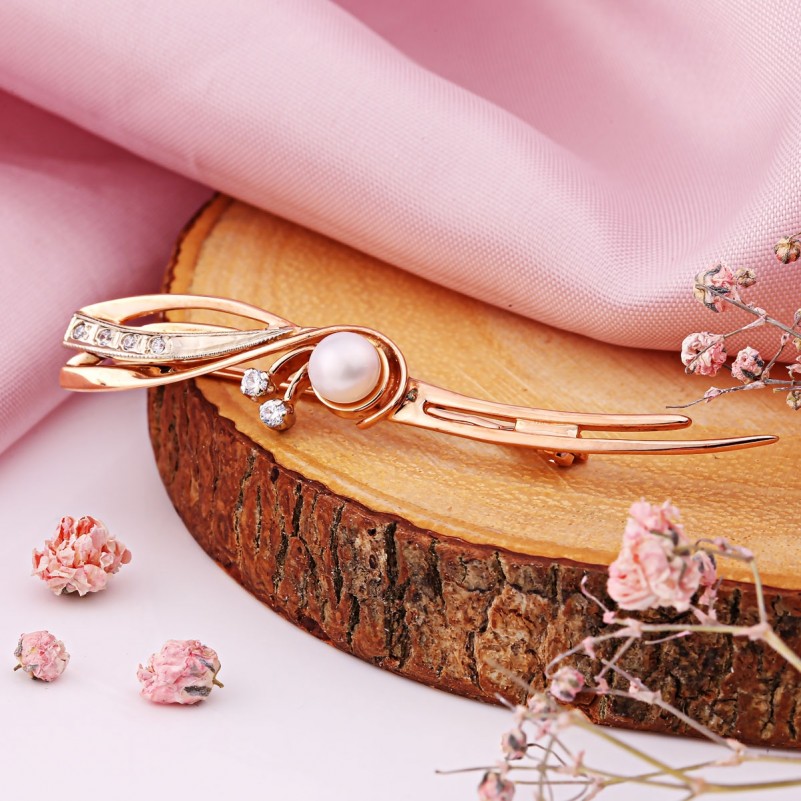 Брошь из русского золота 585 Фианиты Жемчуг. Брошь из красного золота 585 пробы со вставками сверкающих фианитов на фоне из белого золота и природным, искусственно выращенном, жемчугом, растущим в привычных для себя условиях! Броши из золота создают необходимый акцент в образе, и привлекают внимание к богатству и роскоши аксессуаров, ведь золото – это красиво, стильно, шикарно, дорого.