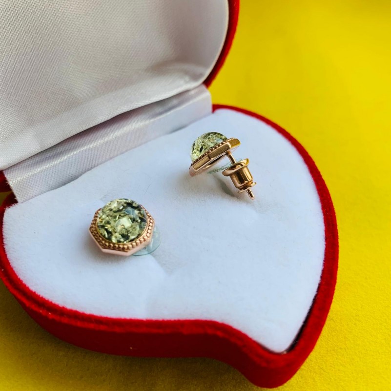 Позолоченные серьги - пусеты c янтарем. Чудесные серьги - пусеты из серебра 925 пробы с позолоченным покрытием и янтарём, играющим всеми оттенками зелёного цвета. Уникальная возможность подчеркнуть свою индивидуальность, придать образу женственности, солнечности и нежности.