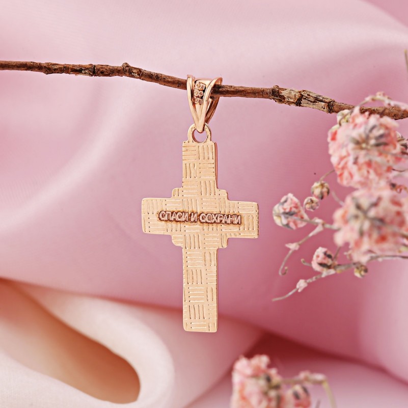 Красное золото 585 Золотой крестик - подвеска. Подвеска-крестик из красного золота 585 пробы. На оборотной стороне молитва: "Спаси и сохрани". Крест не царапается при использовании.