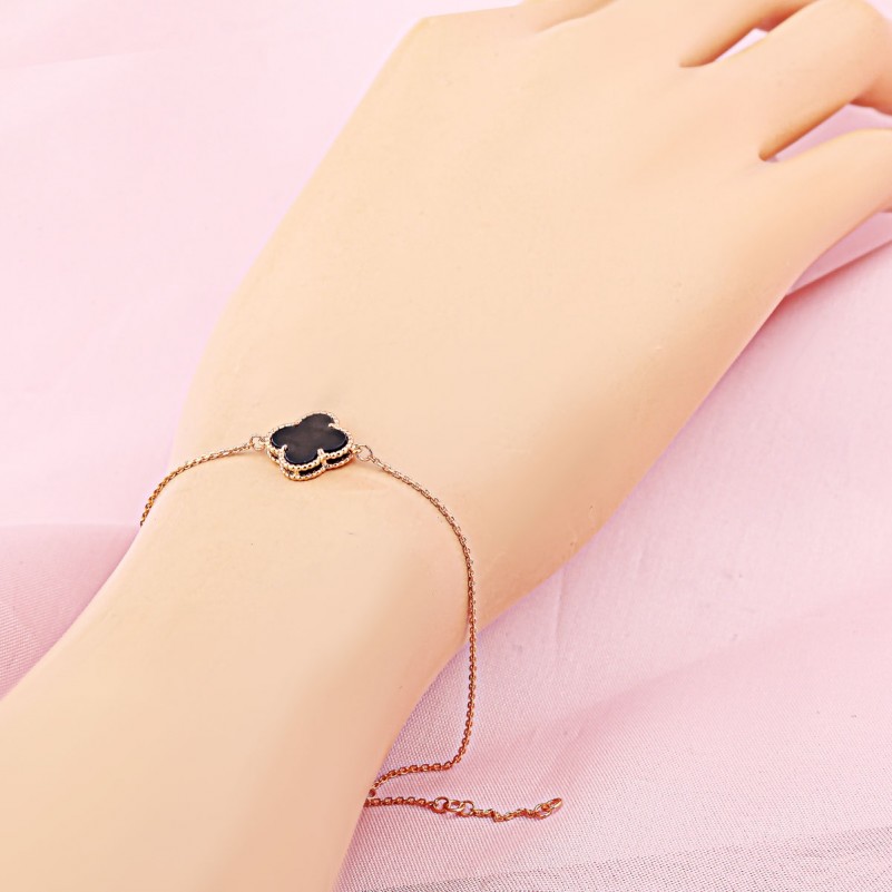 Браслет Русское золото 585 Оникс ?10 мм. Нежный и романтичный браслет из красного золота 585 пробы, украшенный вставкой чёрного оникса. Цепь - якорное плетение с алмазной огранкой.