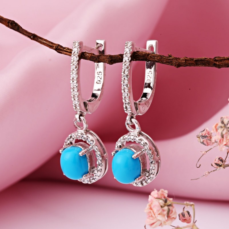 Гарнитур из серебра 925 пробы Бирюза и фианит. Элегантный гарнитур из серебра 925 пробы со вставками очаровательной и нежной бирюзы и сверкающих фианитов, который подчеркнёт вашу индивидуальность и чувство стиля. Набор состоит из подвески и серёг - подвесок с английским замком.