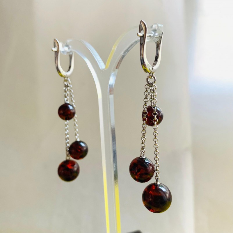 Купить серебряные серьги - подвески с янтарём. Чудесные серьги-подвески из серебра 925 пробы с покрытием из родия и с удивительным янтарём коньячного цвета, подвешанного на цепочка плетения Бельцер. Уникальная возможность подчеркнуть свою индивидуальность, придать образу женственности, солнечности и нежности.