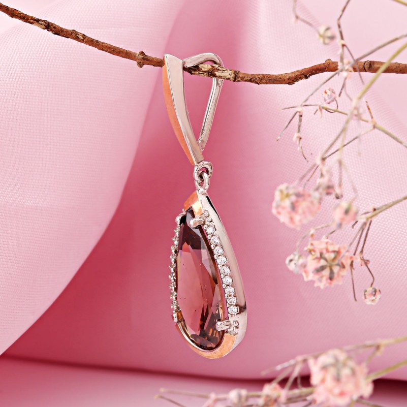 Серебряная подвеска с золотом Фианиты. Восхитительная подвеска из серебра 925 пробы и золота 375 пробы со вставками сверкающих фианитов и крупного коричневого фианита, который переливается всеми цветами радуги благодаря своим граням! Комбинация этих очаровательных камней разных размеров придаёт изделию неповторимый вид и пленяет глаз. Такая подвеска подчеркнёт нежность, женственность и очарование своей хозяйки!