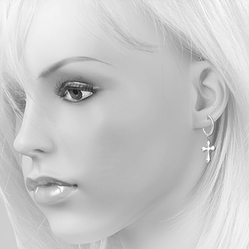 Купить серебряные серьги - подвески с крестом. Чудесные серьги-подвески из серебра 925 пробы с покрытием из родия. Возможность подчеркнуть свою индивидуальность.