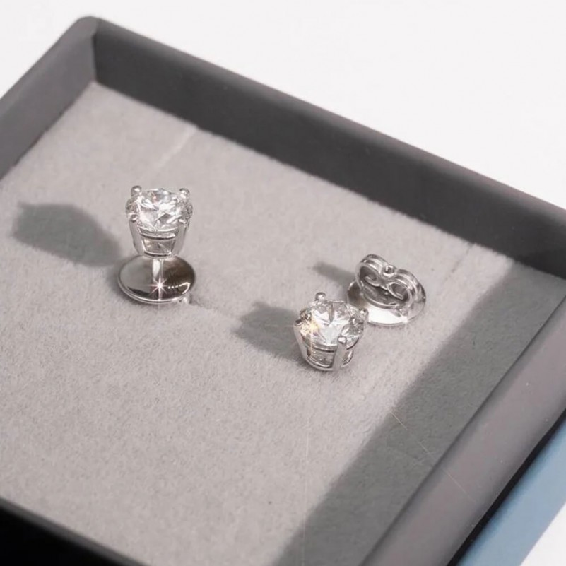 Надежные винтовые замочки диаметром 8 мм обеспечивают комфортное и плотное прилегание сережек к мочке уха. Такая конструкция особенно важна для сережек с крупными бриллиантами (1 карат и более), так как предотвращает их нежелательное “подворачивание” вниз.