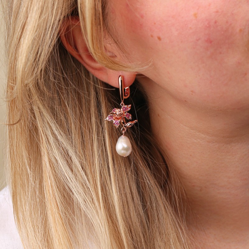 Материал: Серебро 925 пробы Вид обработки: Золочение Вставка: 2 жемчуг 13.0 х 9.0 мм; фианиты Ø 2.0 мм Размеры: ширина 20.0 мм/ длина 51.0 мм