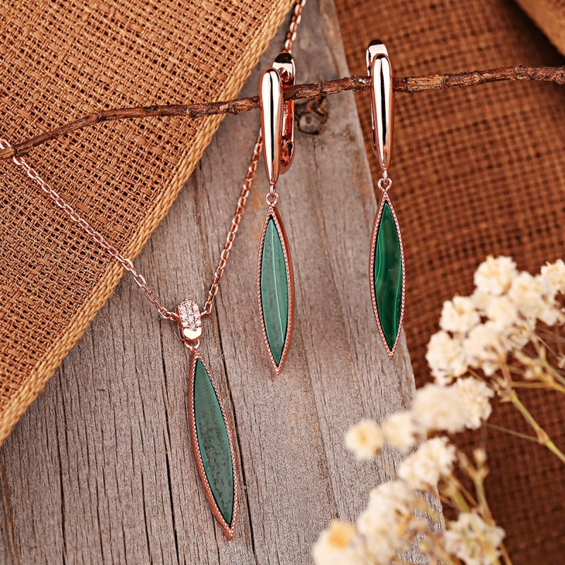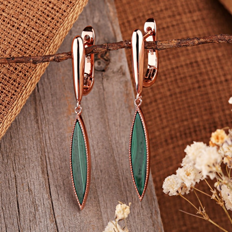 С такими серьгами из малахита и золочёного серебра каждая женщина выглядит стильно, элегантно и неповторимо.