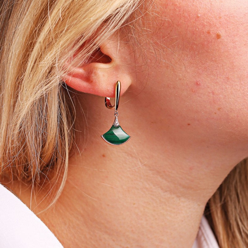 Позолоченные серьги в Германии. Очаровательные серьги-подвески с малахитом из золочёного серебра 925 пробы. Элегантные серьги из золочёного серебра 925 пробы, украшенные уникальным малахитом и сверкающими фианитами. Эти изысканные серьги – идеальный способ подчеркнуть вашу индивидуальность, женственность и солнечное очарование.