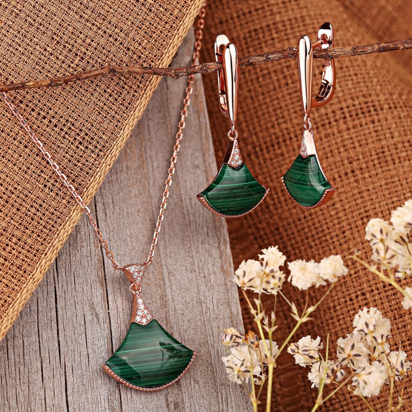 - Малахит – это натуральный камень с уникальной зелёной текстурой, который привлекает внимание и делает образ неповторимым