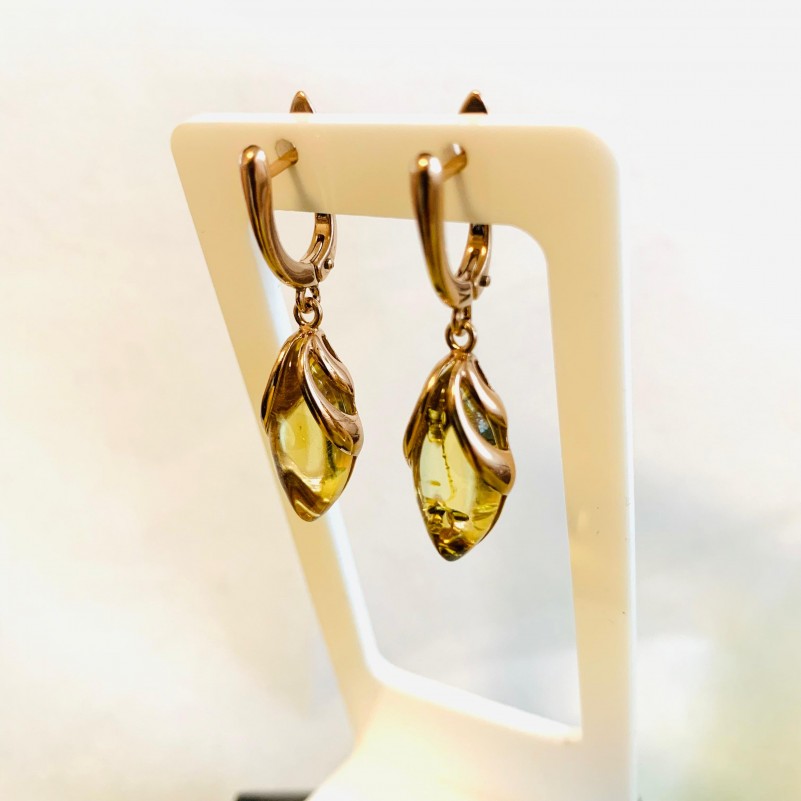 Позолоченные серьги подвески Янтарь. Очаровательные серьги-подвески из серебра 925 пробы с твёрдой позолотой и янтарём, с этим удивительным «кусочком солнца», играющим всеми оттенками медового цвета. Уникальная возможность подчеркнуть свою индивидуальность, придать образу женственности, солнечности и нежности. От такой красоты сложно отвести глаз!