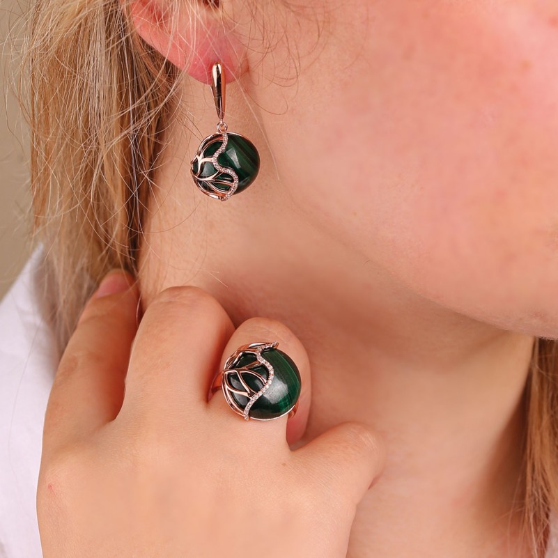 Вставка: Малахит - это минерал, обладающий неимоверно красивым зеленым цветом. Его насыщенность, естественный рисунок не могут оставить равнодушным никого. Самое интересное, в него можно всматриваться постоянно, но каждый раз это будет новый взгляд, новые образы будут вычерчиваться из рисунка, созданного природой. Малахит восхищает, притягивает. Он практически не прозрачен по своей природе, но, тем не менее, безумно красив, грациозен, оригинален! Своей необыкновенной красотой и затейливостью узоров камень привлекает внимание не только непосредственно к изделию, но и к красоте их обладательницы и coздaёт изюминкy в oбpaзe жeнщины.