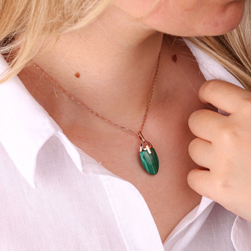 Подарите себе или близкой женщине украшение, которое подчеркнёт индивидуальность, женственность и сияние образа. Этот изысканный кулон выполнен из позолоченного серебра 925 пробы и украшен крупным малахитом с уникальной текстурой — ни одно изделие не повторяет другое! В комплекте — цепочка с якорным плетением и алмазной огранкой, добавляющая безупречный блеск.