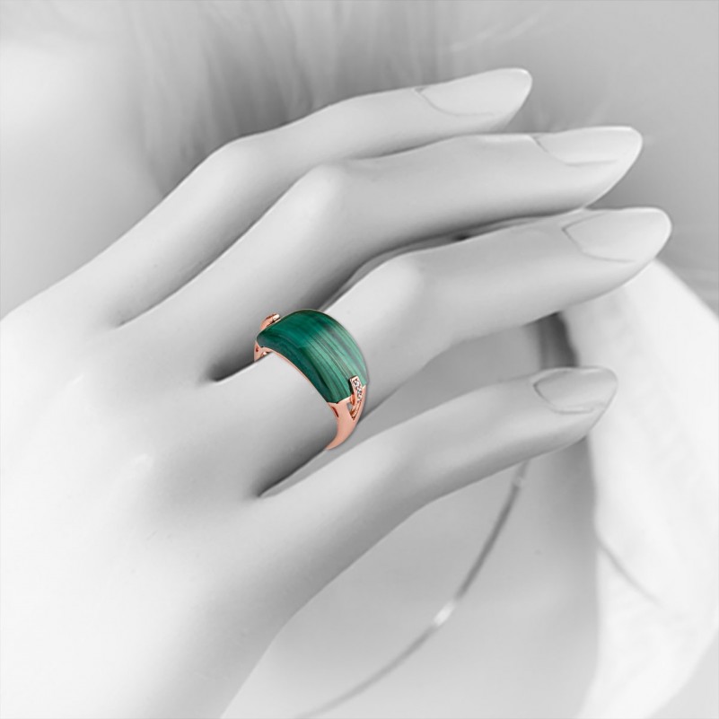 Вставка: 1 малахит 20.0 х 11.0 мм; 6 фианиты Ø 1.0 мм