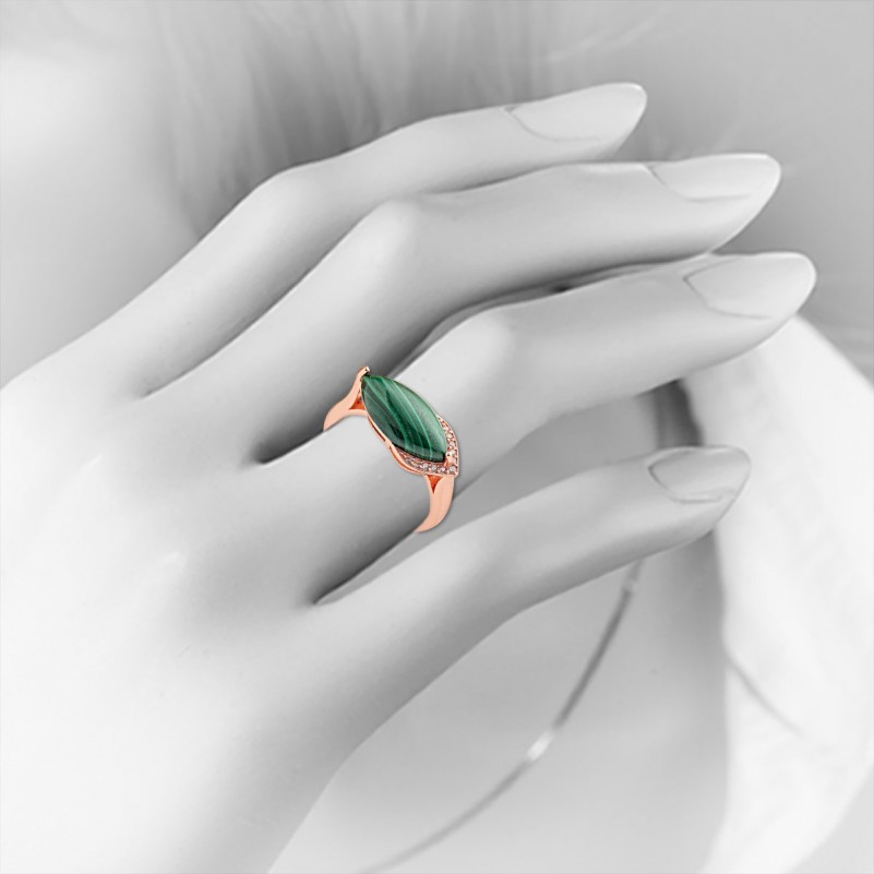 Вставка: 1 малахит 15.0 х 8.0 мм; фианиты Ø 1.0 мм