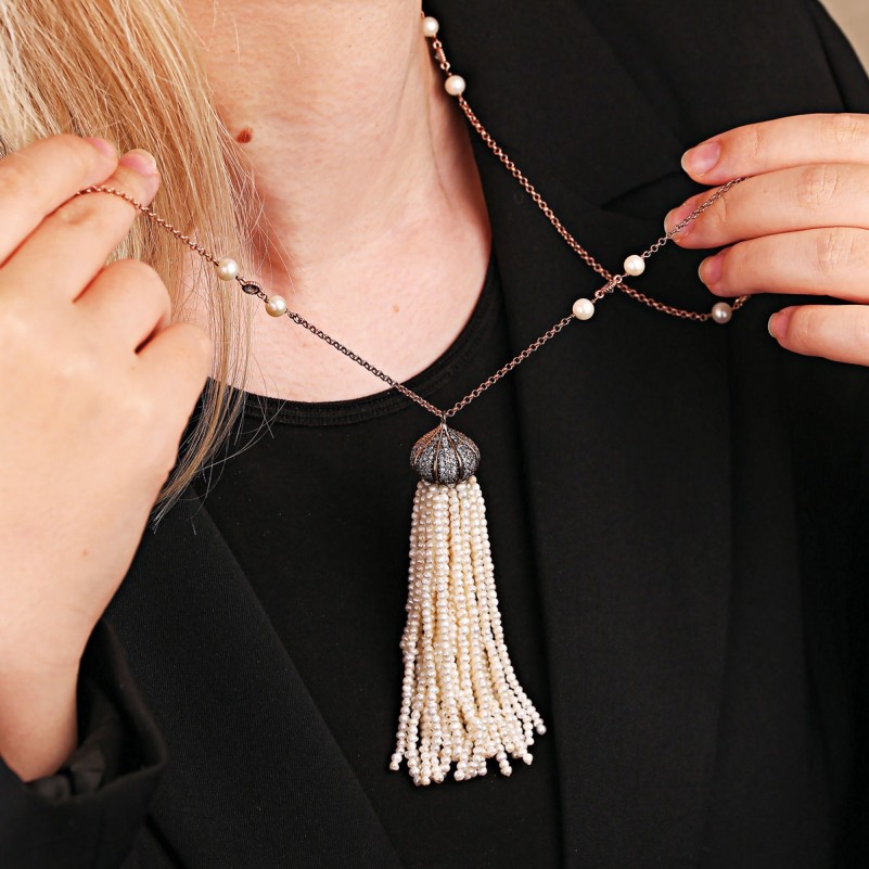 жемчугом - в своем роде уникальные и необыкновенные украшения, которые украсят гардероб каждой уважающей себя леди. Покоряя нас своей изысканностью, красотой и великолепным мерцающим блеском, они способны подарить нам истинную радость от соприкосновения с прекрасным шедевром, имя которому – жемчужина. Благодаря тёплому переливчатому блеску и форме, жемчужина считается символом женственности, поэтому нет представительницы прекрасного пола, которой не подойдёт данное изделие.