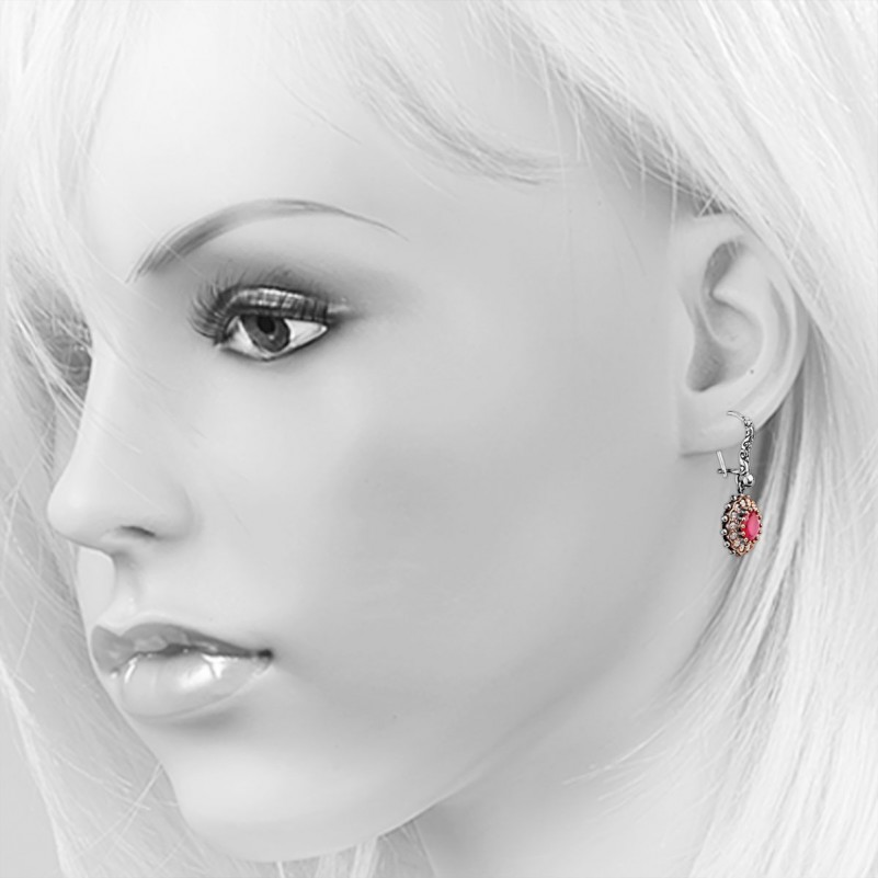 Серебряные серьги с рубином корунд и фианитами в бронзовом обрамлении – чернёное серебро 925 с французским замком.