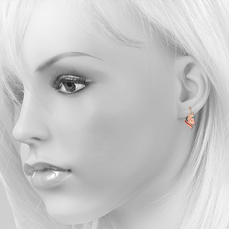Золотые серьги для девочки. Детские золотые серьги в виде единорога с голубой, розовой и фиолетовой эмалью