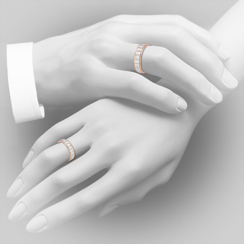 Контраст тёплого и холодного оттенков — делает кольцо универсальным, подходящим и мужчинам, и женщинам.