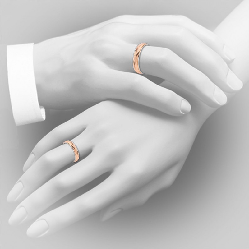Благородный контраст металлов — красное золото подчёркивает тепло чувств, белое — чистоту и ясность союза.