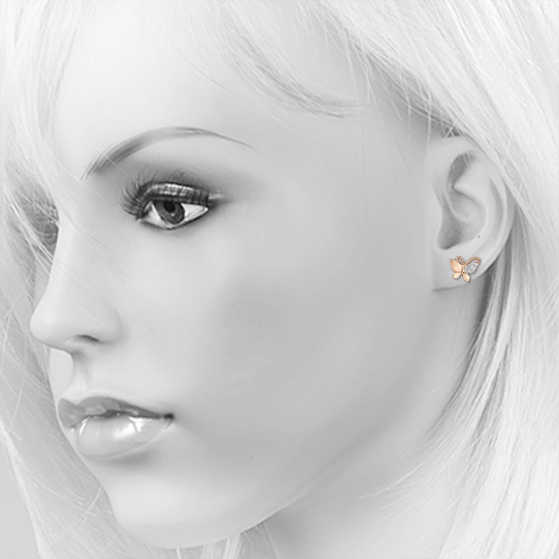 Серьги из русского золота 585 Бриллианты. Эти изысканные серьги-пусеты в форме бабочек из красного золота 585 созданы для тех, кто выбирает украшения, наполненные нежностью, символикой и сиянием. Их плавные линии напоминают лёгкое движение крыльев, а тёплый оттенок золота подчёркивает женственность и элегантность образа.