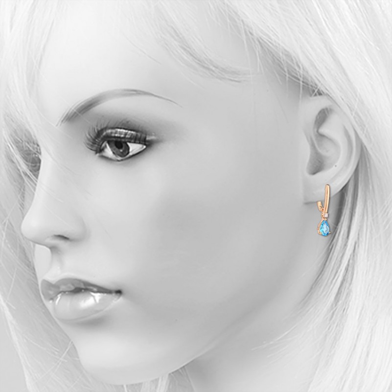 Вставки: 2 бриллианты 0,0928ct 4/6А кр-57 (Н); 2 топаз груша 3,1ct 9.0 х 6.0 мм