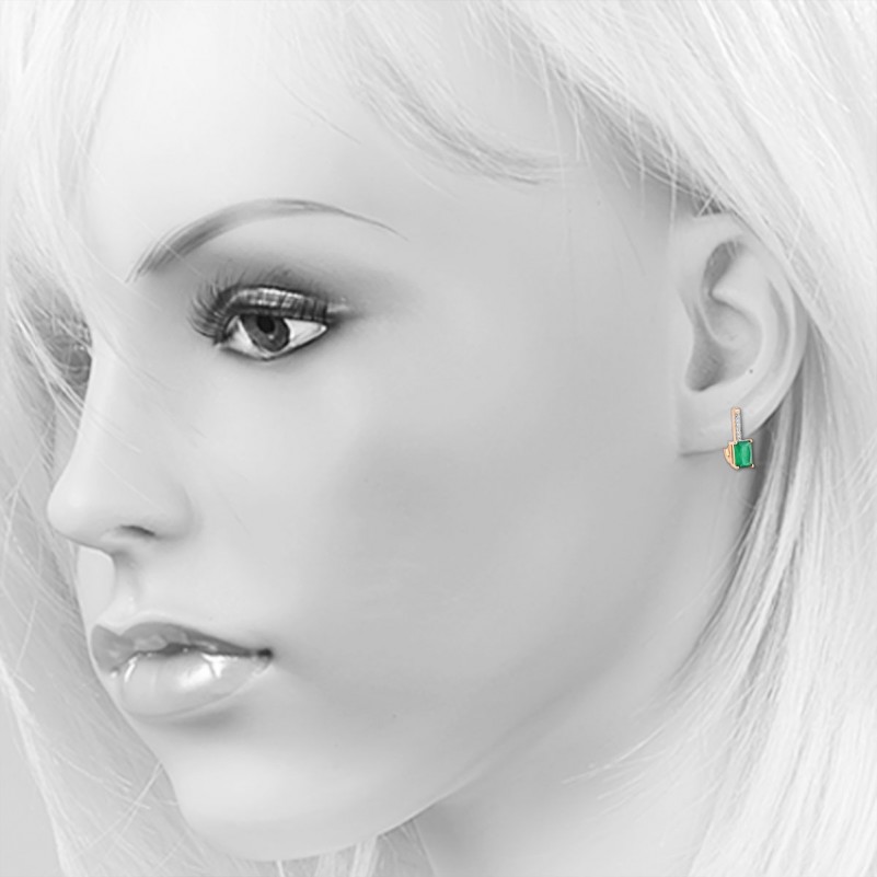 Серьги золото 585 агат бриллианты. Благородная глубина зелёного агата в сочетании с нежным сиянием бриллиантов придаёт этим серьгам выразительный, современный и в то же время романтичный характер. Прямоугольный огранённый агат притягивает взгляд насыщенным зелёным оттенком, создавая ощущение гармонии и природной чистоты. Его геометрия элегантно подчеркивается вертикальной линией бриллиантов, закреплённых в родированном элементе, что добавляет украшению холодный акцент и усиливает блеск камней.