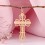 Православный крест из красного золота 585 пробы выполнен в ажурном стиле с алмазной огранкой, декоративными элементами и распятием из белого золота.