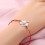 В центре клевера сияет прозрачный фианит, который придаёт украшению лёгкий блеск. Лепестки украшены символическими словами на турецком языке, что делает браслет не только стильным аксессуаром, но и украшением со смыслом.