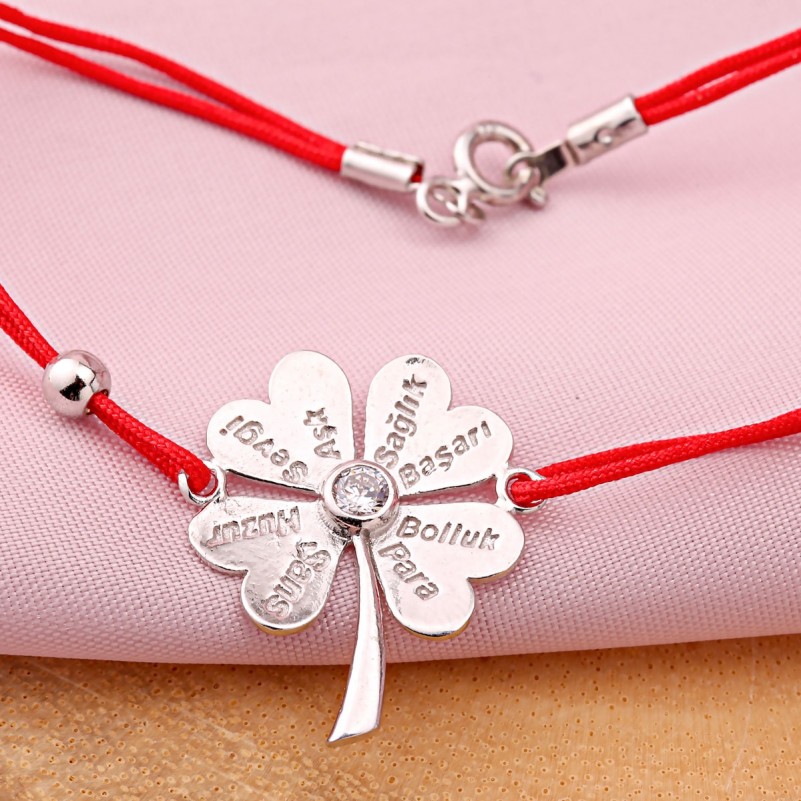 Красная нить во многих культурах считается символом защиты, удачи и позитивной энергии. В сочетании с серебряным клевером он используется как талисман.