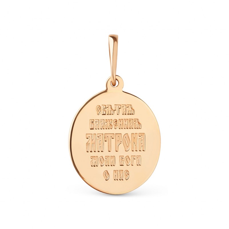 Подвеска икона золото 585. Иконка-подвеска из красного золота 585 пробы с изображением святой блаженной Матроны. Лицевая сторона выполнена с рельефной проработкой образа. На оборотной стороне нанесена молитвенная надпись: «Святая блаженная Матрона моли Бога о нас».