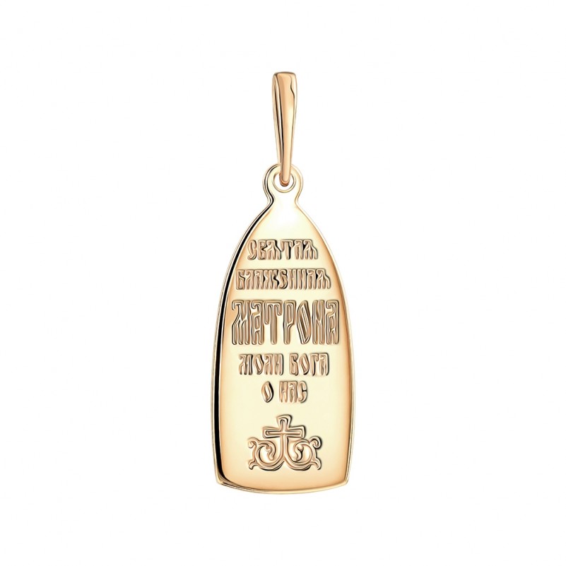 Подвеска икона золото 585. Иконка-подвеска из красного золота 585 пробы с изображением святой блаженной Матроны. Подвеска икона вытянутой формы с гладкими полированными краями и рельефной центральной частью. На оборотной стороне размещена молитвенная надпись: «Святая блаженная Матрона моли Бога о нас».