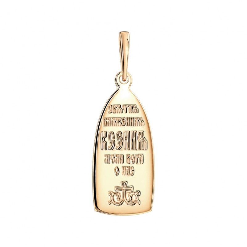 Подвеска икона золото 585. Иконка-подвеска из красного золота 585 пробы с изображением святой блаженной Ксении. Подвеска икона вытянутой формы с гладкими полированными краями и рельефной центральной частью. На оборотной стороне размещена молитвенная надпись: «Святая блаженная Ксения моли Бога о нас».