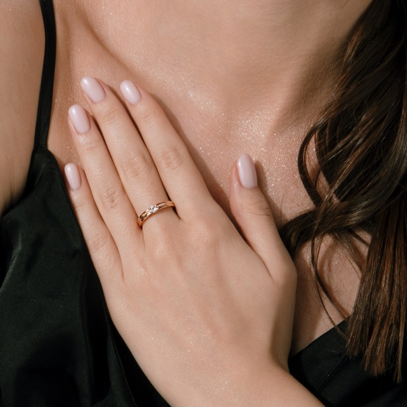 Золотые кольца с фианитами 585. Кольцо из красного золота — это сдержанная элегантность, доведённая до совершенства. Чистая форма и мягкие линии создают ощущение баланса, в котором нет ничего лишнего — только гармония и точность исполнения.