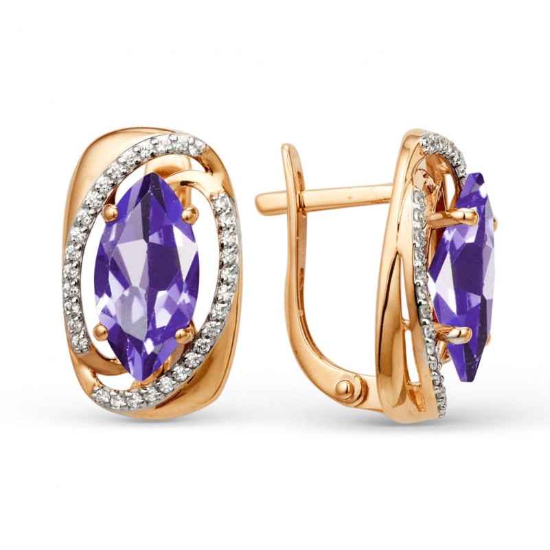 Купить золотые серьги с аметистом. В этих серьгах из красного золота 585 всё построено вокруг света и глубины. Аметист насыщенного фиолетового оттенка, вытянутый в форме маркиз, словно заключён в мягкий ореол сияния — изящную линию, усыпанную бриллиантово-прозрачными фианитами.