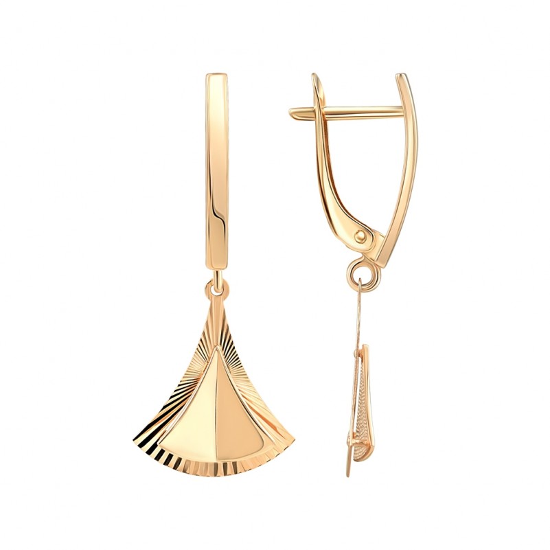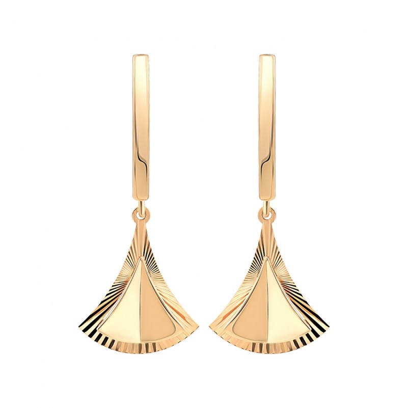 Серьги выполнены из красного золота 585 пробы — тёплого, благородного металла с мягким сиянием. Полированные элементы создают зеркальный эффект, а лучевая фактура усиливает игру света, добавляя украшению глубину и динамику.