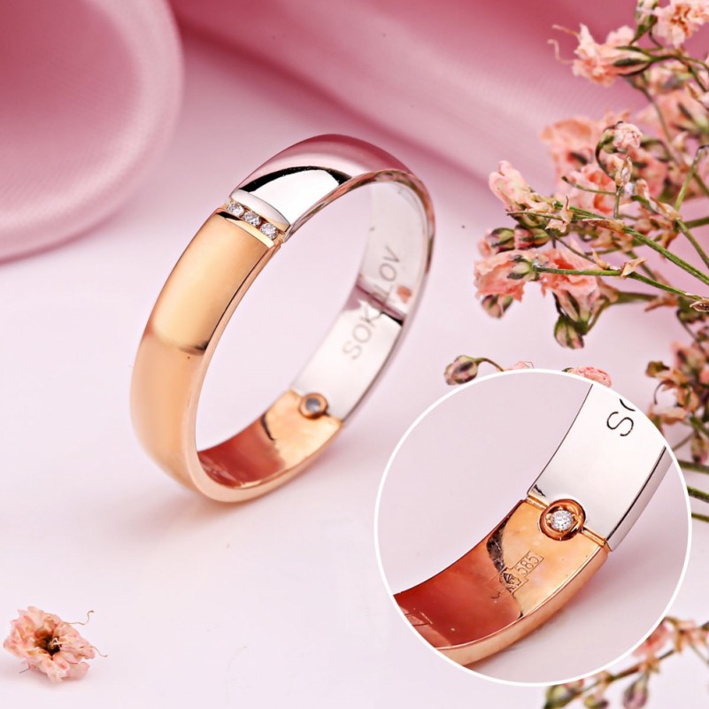 СОКОЛОВ Золотое кольцо обручальное. Кольцо из красного золота с родированным акцентом 585 и бриллиантами.