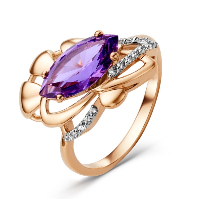Купить золотые кольца с Аметистом. Прекрасный камень аметист – самая дорогая разновидность кварца. Он ценится с глубокой древности и, согласно библейским описаниям, был вставлен в пектораль первосвященника Аарона в числе 12 драгоценных камней.<br />
