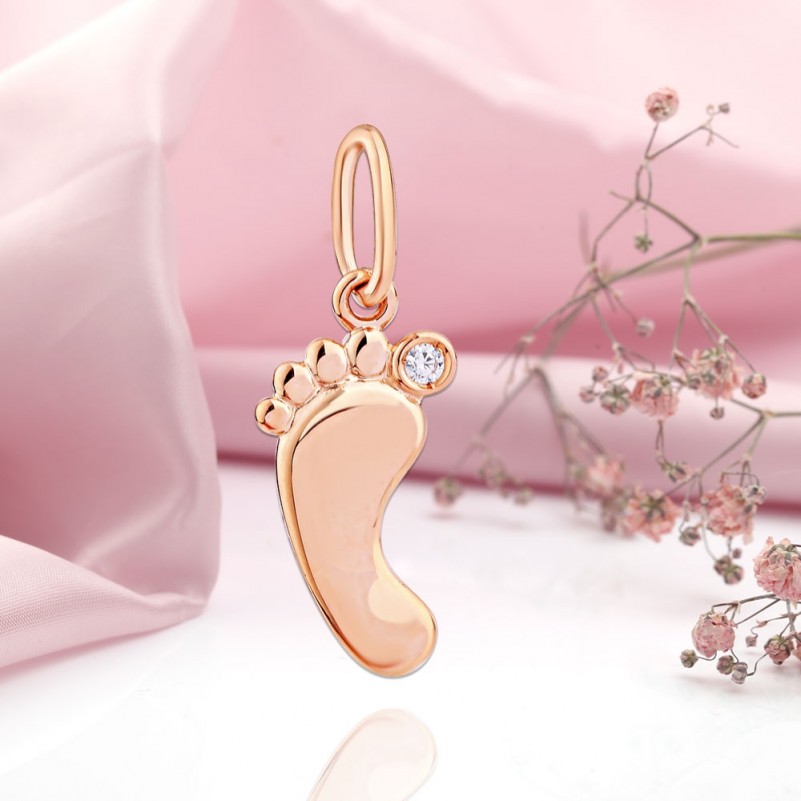 Подвеска Золотая Пяточка Младенца - преподнося своей жене золотой кулон на рождение ребенка в форме ножки малыша или золотую подвеску в виде пяточки, вы выражаете ей свою любовь, признательность и благодарность за то, что она 9 месяцев носила под сердцем плод вашей любви и подарила вам самый лучший на земле подарок.Оригинальный кулон с ножкой, изысканно украшенный бриллиантами, сапфирами или феонитами, станет символом вашего семейного счастья и благополучия, талисманом и мощным оберегом, который защитит маму и малыша,а также всю вашу семью от разных неприятностей и проблем.